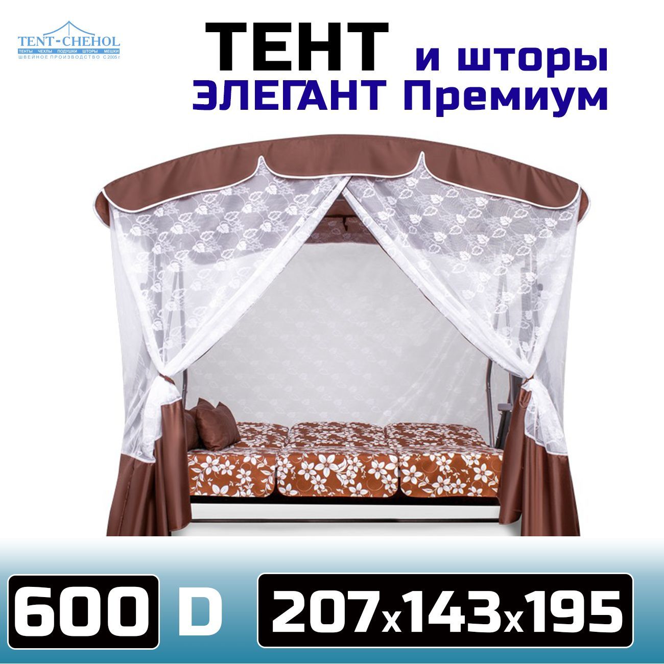 Тент и шторы для качелей Элегант Премиум 600D, шоколадный, 207х143х195